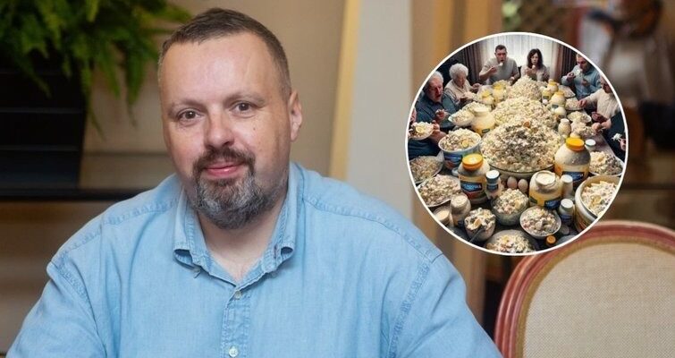 Andrius Užkalnis savo „Instagram“ paskyroje ir vėl sugebėjo sukelti diskusijų audrą. Šįkart jis pasidalijo senovine nuotrauka, kurioje užfiksuota šeima, prie stalo, nukrauto mišrainėmis, švenčianti, rodos, dar sovietinių laikų dvasia alsuojančius Naujuosius metus. Nuotrauką lydėjo ir kandus A. Užkalnio prierašas, kuris ne tik priminė senąją sovietinę atmosferą, bet ir su ironija ją „pagerbė“.
