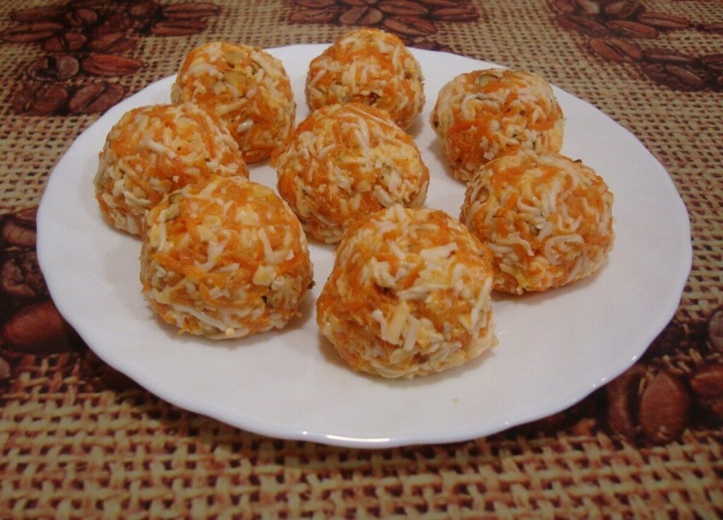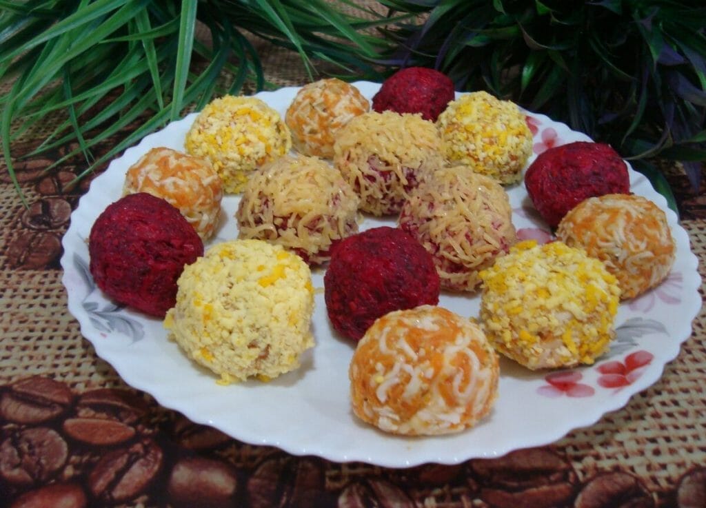 Užkandiniai rutuliukai su silke ir riešutais gatavi.