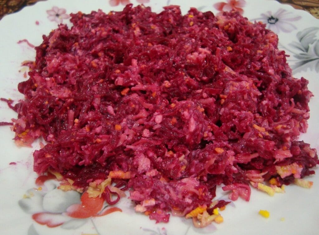 Burokėlius ir morkas išverdu ir nulupu. Burokėlius tarkuoju vidutine trintuve.