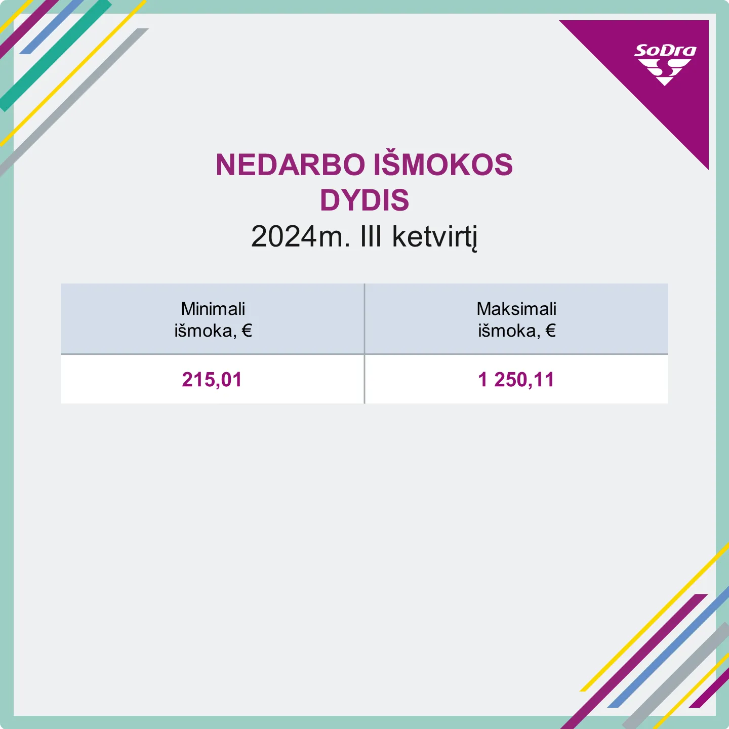 2024 metais MMA siekia 924 eurus, taigi pastovi nedarbo išmokos dalis yra 215,01 euro – ji lieka tokia pat, kaip du pirmuosius šių metų ketvirčius.