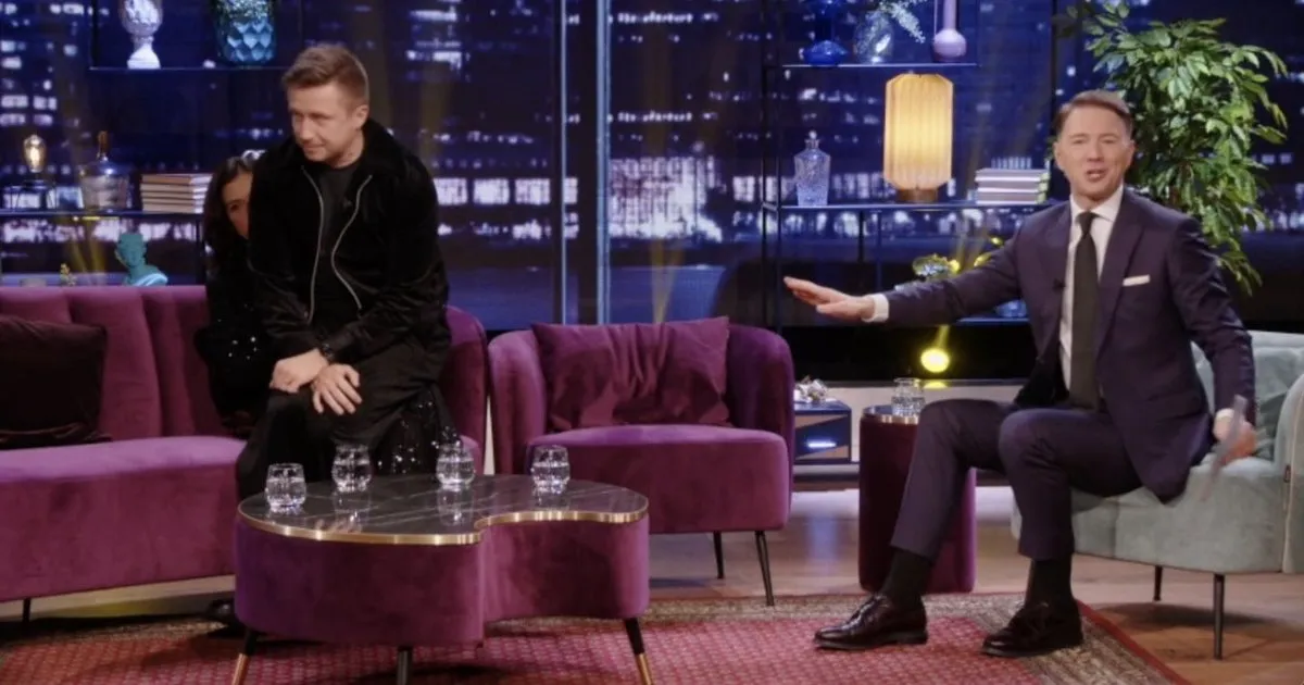 Atsinaujinusioje laidoje „Gero vakaro šou“ Marius Jampolskis ir Irūna Puzaraitė ne tik dalijosi bendravimo paslaptimis, bet ir taip suartėjo ant sofos, kad Irūna net pasiūlė kolegai atsisėsti jai ant kelių.