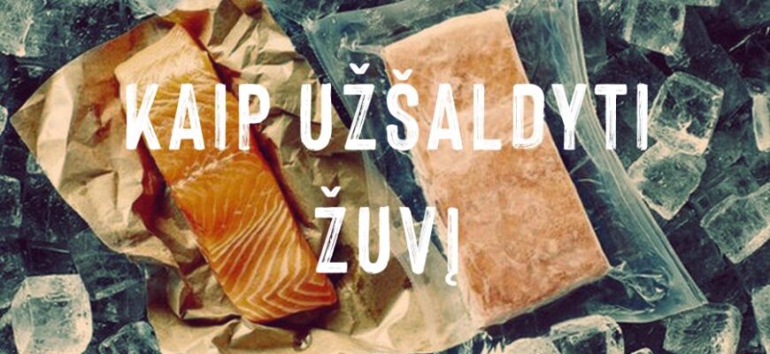 - Žuvį su padėkliuku kelioms sekundėms panardinti į šaltą vandenį (kad neliptų prie padėkliuko) ir dar kartą užšaldyti. Žuvies paviršius apsitrauks plonu ledo sluoksneliu, todėl žuvis šaldiklyje nedžius.