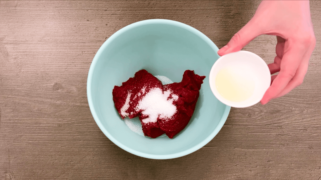 Beriu į pastą 1 valgomąjį šaukštą cukraus.