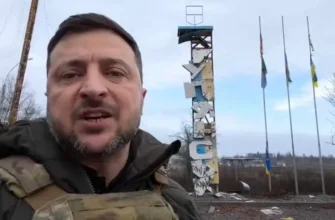 Ukrainos prezidentas nufilmavo vaizdo įrašą prie stelos prie įvažiavimo į Kupjansko miestą Charkovo srityje