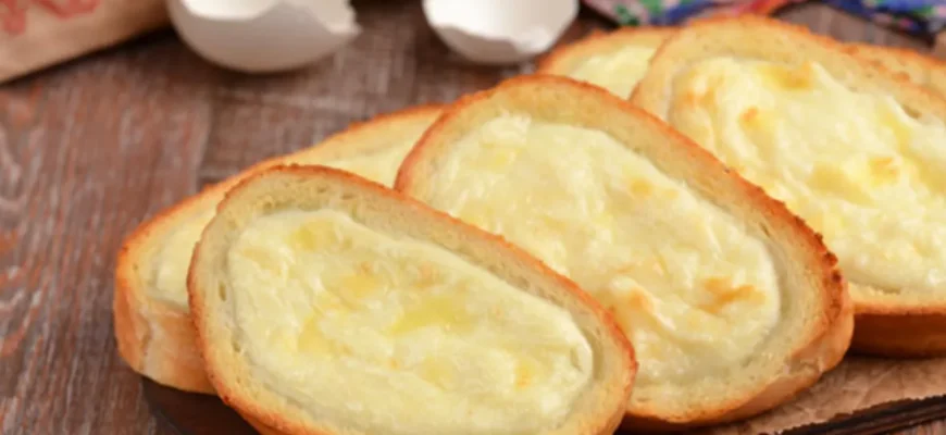 1 variantas. Paruošimui imame riestainius ir plonas batono riekes (po 8 vnt). Batono riekių minkštimą išpjauname.