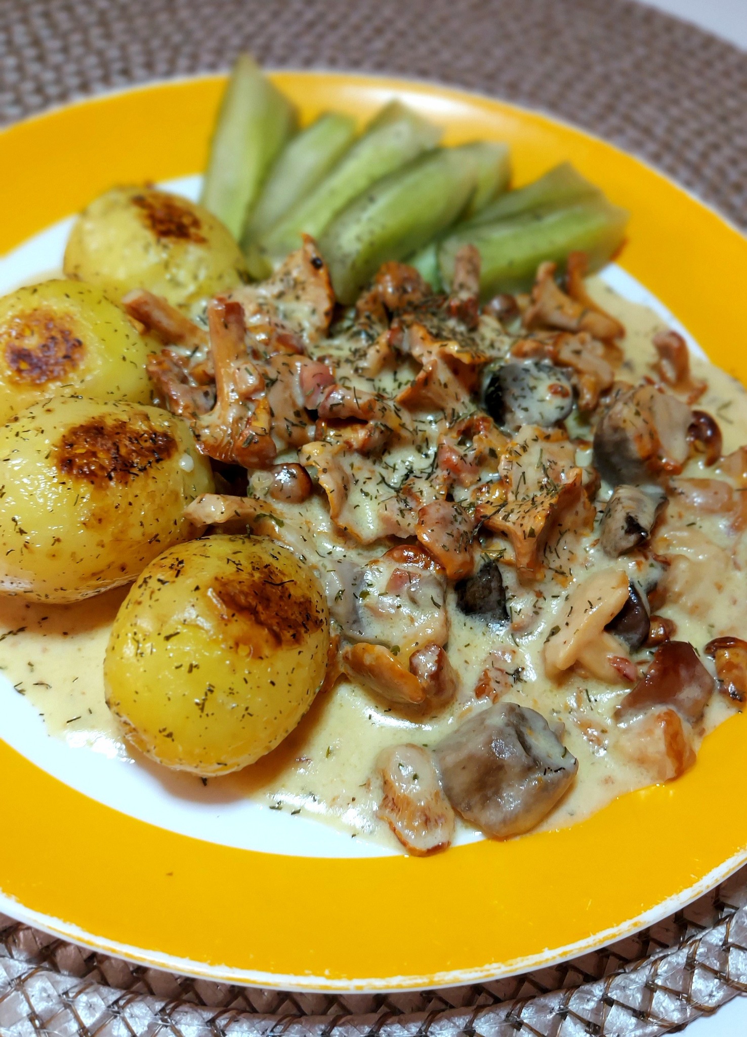- Troškinį valgėte su šviežiai virtomis bulvėmis bei lengvai paraugtais agurkėliais, kurie suteikė patiekalui gaivumo ir rūgštelės.