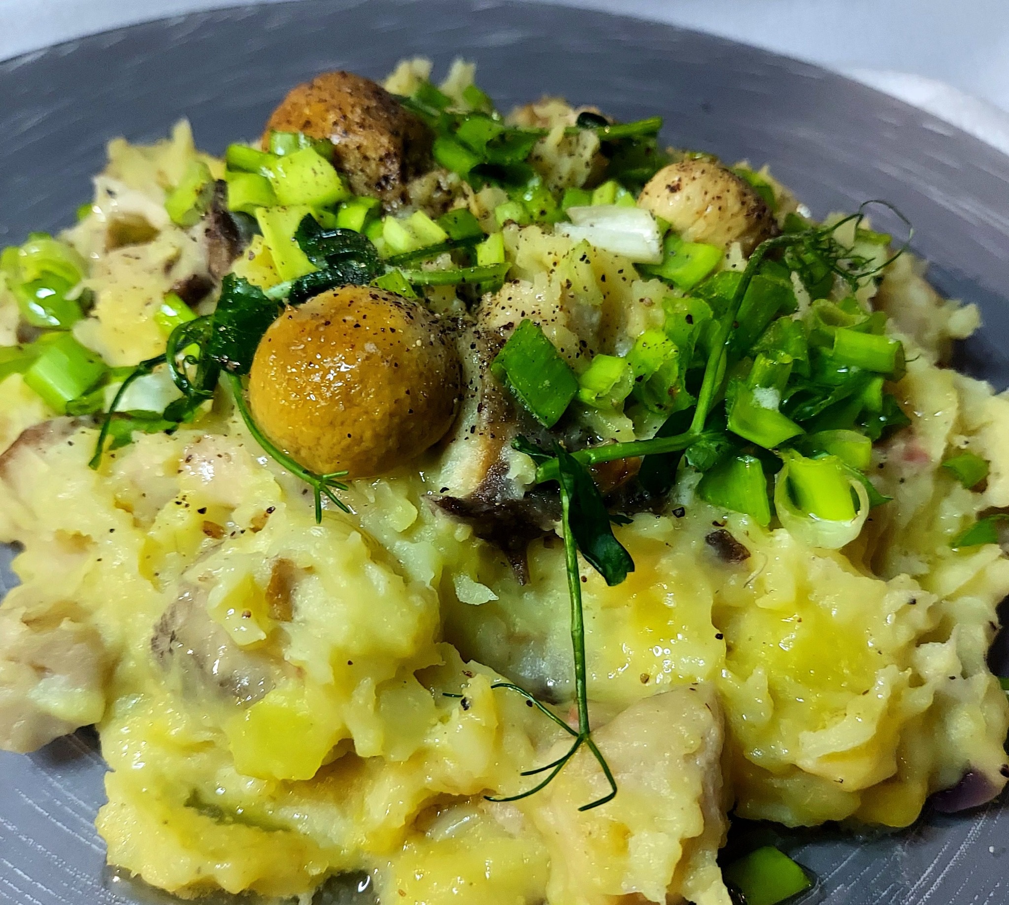 Miško grybai su bulvių koše – tai vienas iš tų lietuviškų patiekalų, kuris ne tik užburia savo kvapu, bet ir sugrąžina į vaikystę, kai rudens vakarais močiutė ar mama virtuvėje ruošdavo jaukius, sotius ir širdį šildančius patiekalus. Šis receptas apjungia natūralų miško grybų aromatą, švelnią ir kremišką bulvių košę bei šiek tiek riebesnį, bet itin gardų grietininį padažą su lašinukais. Toks derinys puikiai tinka rudens ar žiemos pietums, kai norisi jaukumo ir lietuviškų skonių. Tai paprastas, bet nepaprastai skanus patiekalas, kurį galima pritaikyti pagal tai, ką turite namuose – todėl puikiai tinka tiek kasdieniams, tiek šventiniams pietums. Be to, tai puikus būdas sunaudoti likusį bulvių nuovirą – jį galima panaudoti ne tik sriuboms, bet ir šiam padažui praturtinti skonį.