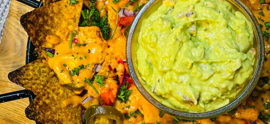 Nachos su kepta vištiena, čederiu ir gvakamole – tai vienas populiariausių užkandžių, atkeliavusių iš Meksikos virtuvės, kuris ne tik nustebins ryškiu skonių deriniu, bet ir taps tikra stalo puošmena įvairiausiems vakarėliams ar jaukiam šeimos pasisėdėjimui. Traškūs nachos kukurūzų traškučiai puikiai dera su sultinga kepta vištiena, saldžiarūgščiu padažu, lydytu čederio sūriu bei pikantiškais jalapenų griežinėliais. Šalia patiekiama gaivi gvakamolė su prinokusiais avokadais, citrinų sultimis, svogūnais ir pomidorais suteikia šiam patiekalui dar daugiau šviežumo bei balanso.