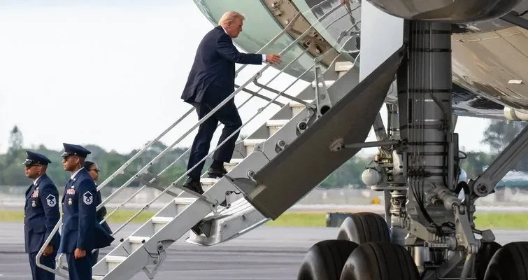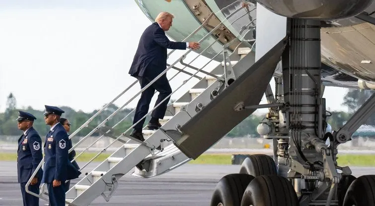 JAV prezidentas Donaldas Trumpas sekmadienį Palm Byčo tarptautiniame oro uoste dėl sustiprintų saugumo priemonių į lėktuvą „Air Force One“ greitai įlipo mažaisiais laiptais, televizijai „Fox News“ sakė vienas Baltųjų rūmų pareigūnas.