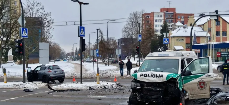 Penktadienio rytą Taikos prospekto ir Studentų gatvės sankirtoje įvyko stipri avarija, kurios metu nukentėjo į iškvietimą vykusi policijos pareigūnė. Priešais minimą sankryžą įsikūrusios įmonės stebėjimo kamera nufilmavo transporto priemonių susidūrimo momentą.