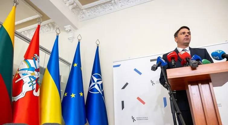 Paklausus, ar ministerijoje tikrai tebekabo Ukrainos vėliava, politikas tai patvirtino.