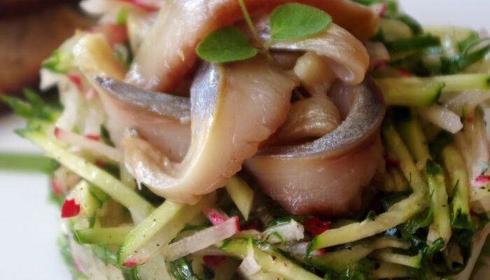 Mums buvo labai skanu, kad nutarėme pakartoti kitą dieną, kol dar turime silkės ir pavasarinių gėrybių.