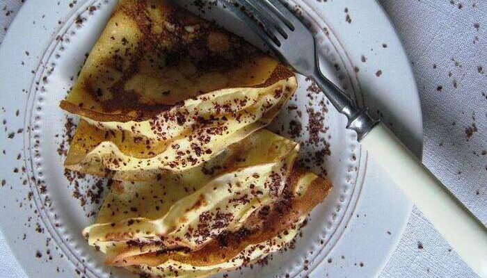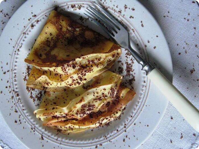 Ir ką aš galiu pasakyti? Tiesiog tobulai ploni lietiniai, svajingai traškiais kraštais, kuriems dar gardesnį “antrąjį kvėpavimą” suteikia puikus kremas ir “sotus” žiupsnis šokolado. O čia į sceną dideliais žingsniais įžengia variacijų ir fantazijos vaidmuo, nes kremas šiukštu nebūtinai privalo būti vanilinis – šliūkštelkite migdolinės esencijos, ir jis ims pasakoti švelnią migdolinę istoriją, o lašelis romo neabejotinai sužadins subtilaus skonio mėgėjų simpatijas.