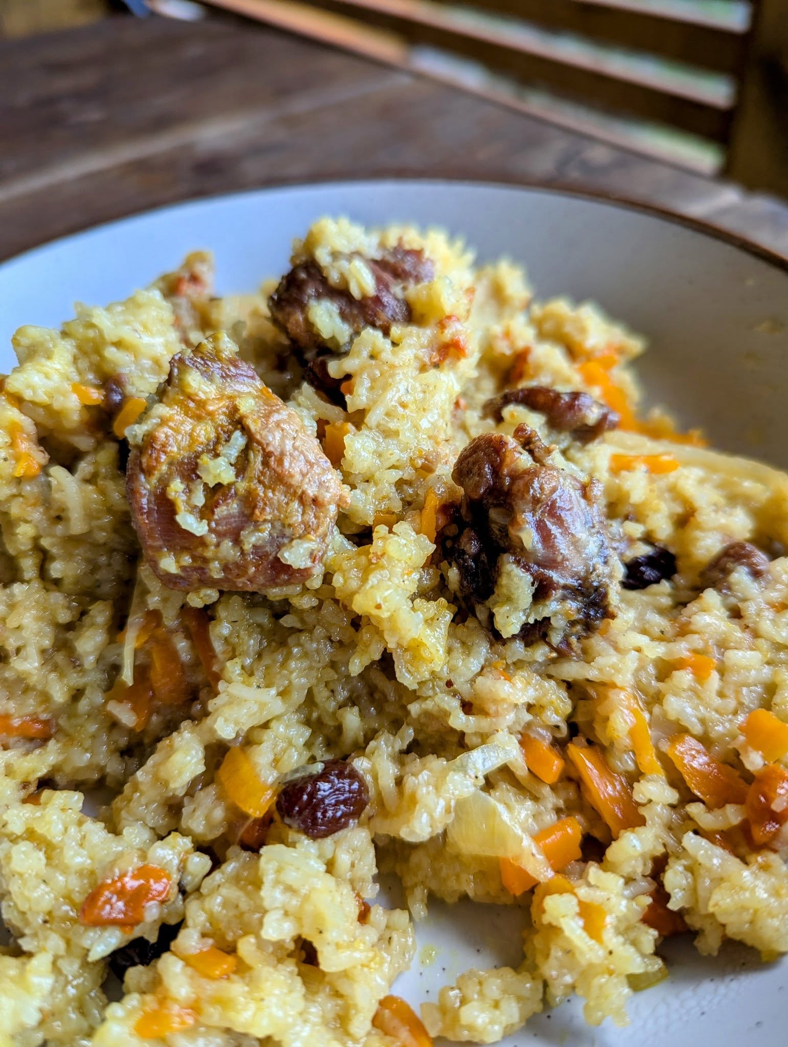 Plovas su antienos ketvirčiu mėsyte – tai ypatingai aromatingas patiekalas, kuris sujungia rytietišką plovo tradiciją ir lietuvišką meilę paukštienai. Antiena suteikia patiekalui gilų, sodrų skonį, o ryžių grūdai įsigeria į prieskonių ir daržovių aromatą. Raugerškio uogos suteikia malonios rūgštelės, o razinos – švelnaus saldumo, todėl kiekvienas kąsnis tampa tarsi kelionė į Rytus.