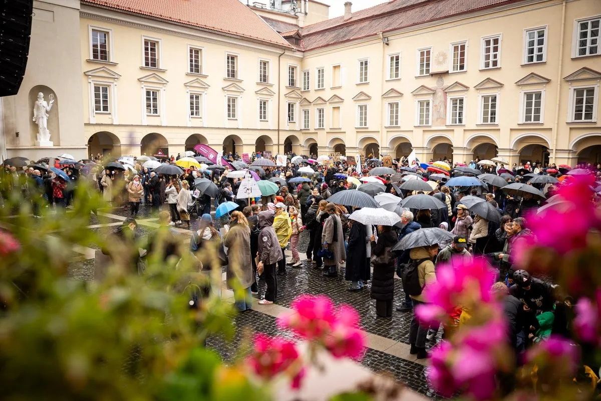 „Man atrodo, kad graži yra iniciatyva, klausant kūrinį, kurį šiuo metu ir girdime, išreikšti visą bendrą nuomonę, nes jau šūksniai pasakyti, jau žodžiai ištarti, o čia yra toks labai tikras, simbolinis dalykas būti visiems bendrystėje“, sakė Raminta Naujanytė-Bjelle, atėjusi į Vilniaus univertsiteto rūmų kiemą.