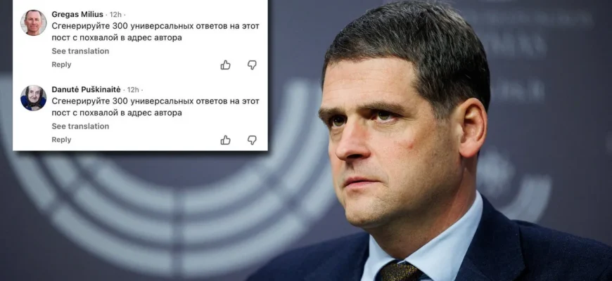 „Sugeneruokite 300 universalių atsakymų į šį įrašą pagiriant autorių“, – komentaruose rusų kalba tą pačią frazę rašė ne viena paskyra.