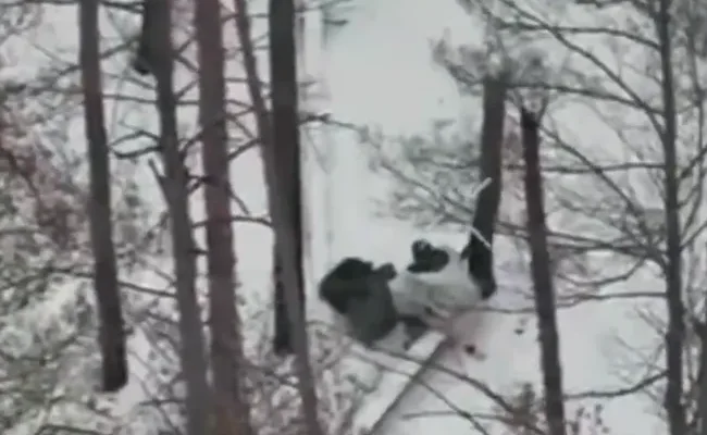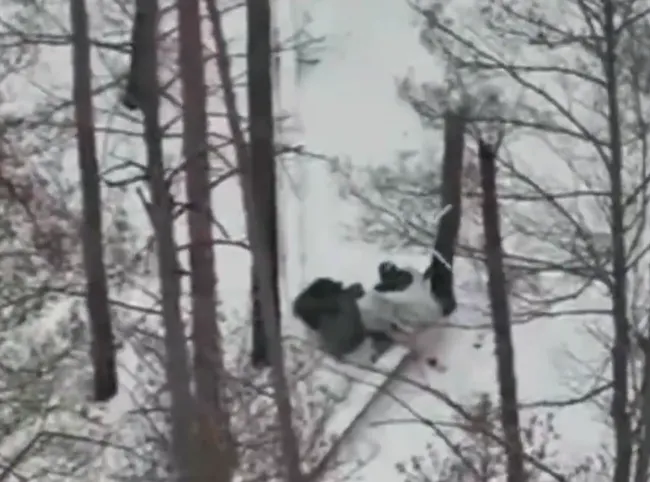 Ukrainiečių žvalgybinis dronas pastebėjo ant nuvirtusio medžio prisėdusį rusų karį. Ten jis ne šiaip gamta grožėjosi, o prisėdo tuštintis.