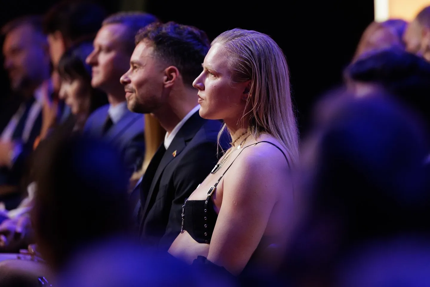 Tačiau kunigui Ričardui Doveikai paskelbus, kad Lietuvos 2025 metų sportininke išrinkta R.Meilutytė, pastaroji nepakilo iš savo vietos. Statulėlę pats kunigas atnešė sportininkei į salę.
