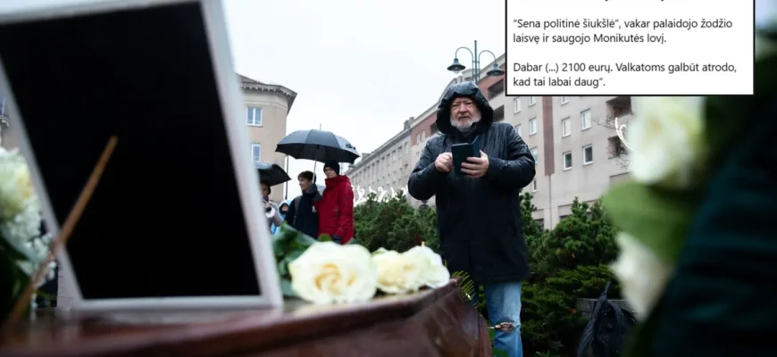 „Nemuno aušros“ lyderis Remigijus Žemaitaitis liberalą Eugenijų Gentvilą, kuris pozavo šalia prie parlamento rūmų pastatyto medinio karsto, savo feisbuko paskyroje pavadino „Seimo valkata“.