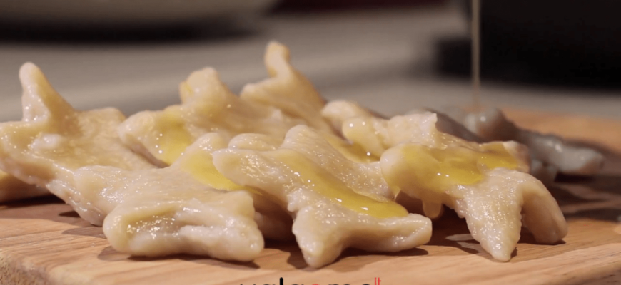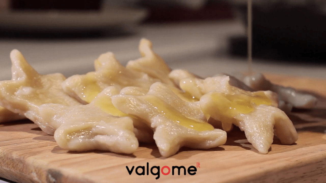 Šių skrylių tešla gaunasi itin minkšta ir šiek tiek lipni. Aš pati jos visai nekočioju. Miltuotomis rankomis tiesiog gnybiu gabalėlį tešlos, tada rankomis volioju ploną dešrą ir aštriu peiliu pjaustau įstrižais kąsniukais, kuriuos po to leidžiu į pasūdytą verdantį vandenį ir, iškilus į paviršių, paverdu dar kelias minutes. Tik tie kąsniukai turėtų būti gan nedideli, nes virdami skryliai dar kažkiek pučiasi.
