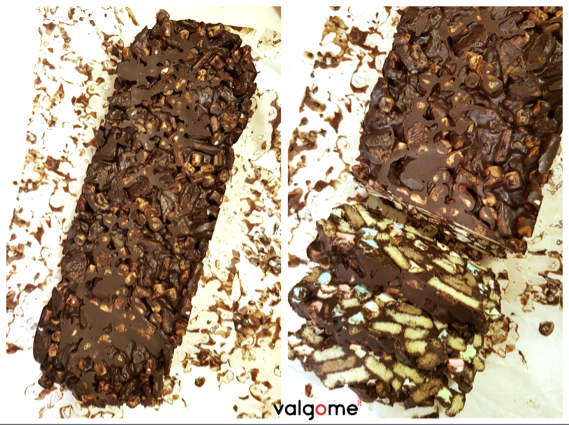 - Ištirpintą šokolado masę užpilkite ant sausainių ir viską labai gerai išmaišykite, kad ingredientai tolygiai pasiskirstytų. Pasirinktą kepimo formą padengkite kepimo popieriumi ir sukrėskite tinginio masę į formą.