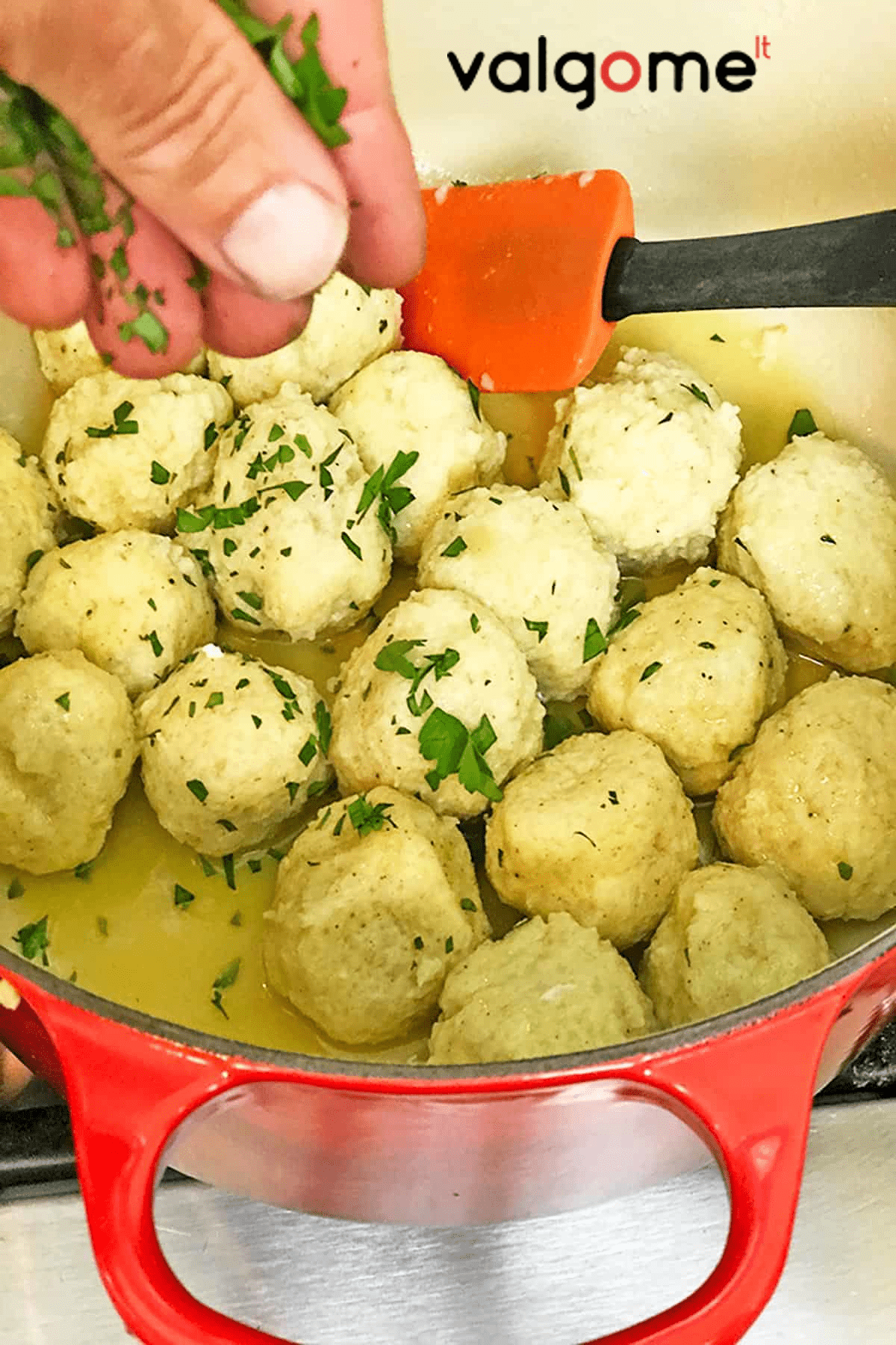 - Drėgnomis rankomis formuok bulvinius kukuliukus ir dėk virti į verdantį, pasūdytą vandenį.