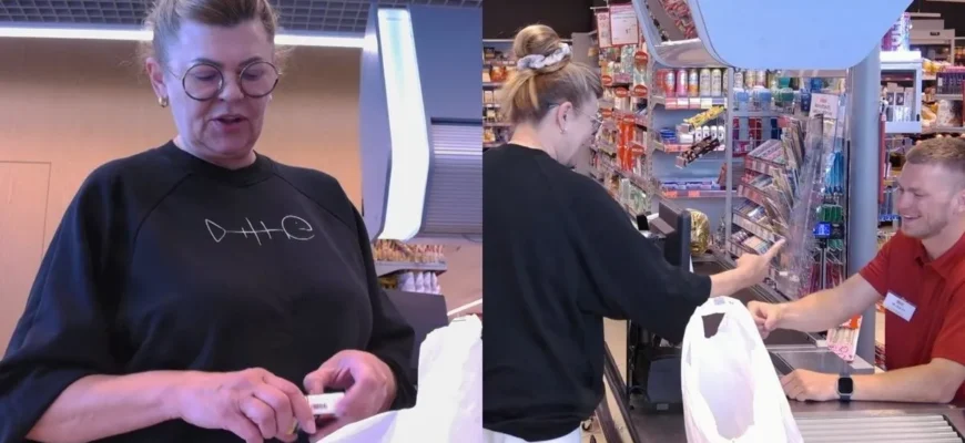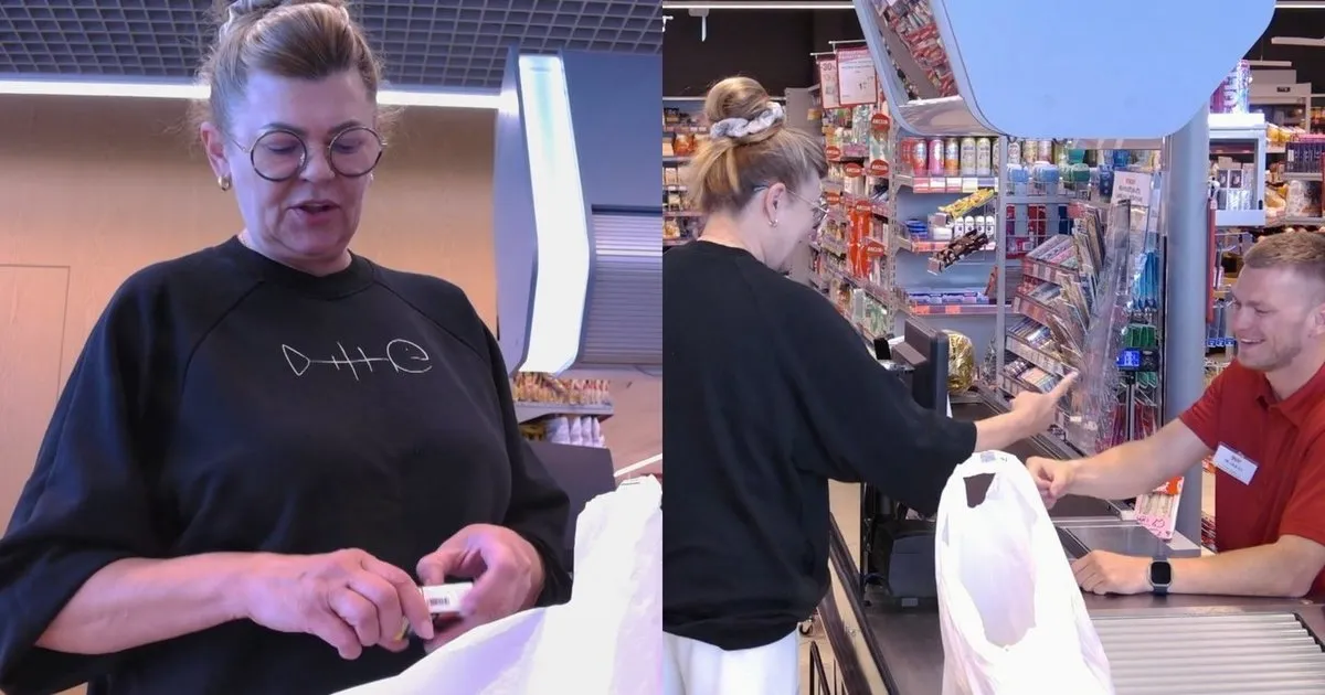 Parduotuvėje apsipirkinėjo moteris, kurios pirkinius skenavo komikas Markas Žukauskas. Jam buvo liepta pradėti žarstyti komplimentus: