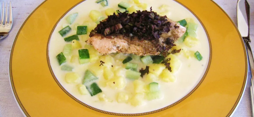 Garnyrą pagardinkite burokėlių daigais ar smulkintomis tamsiosiomis salotomis, o šalia patiekite lašišą su padažu.