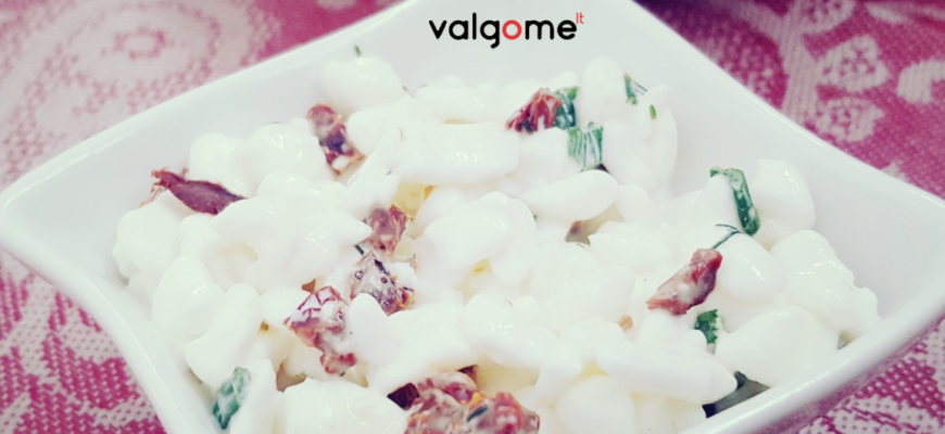 - Pagardiname druska, jei norisi, ir dar kartą viską lengvai išmaišome.