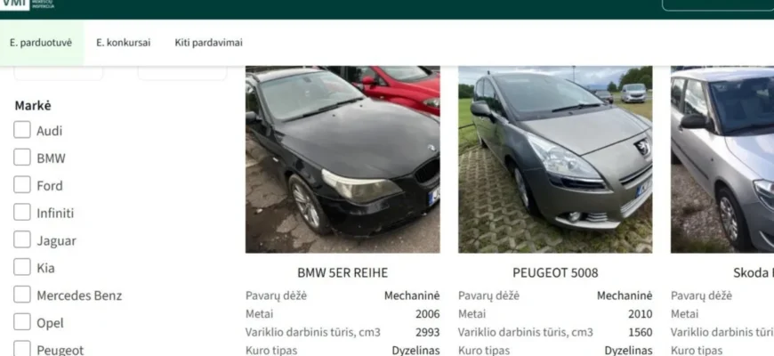 „Nuorodos į transporto priemonių pardavėjų svetaines, taip pat vieši transporto priemonių pardavimo konkursai skelbiami VMI svetainėje.